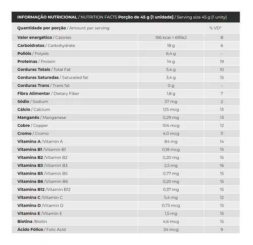 Alta Quantidade de Proteína: Cada barra oferece uma excelente quantidade de proteína, sendo 14g de proteína por barrinha para ajudar na recuperação muscular e no crescimento dos músculos.